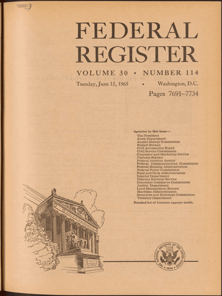 FEDERAL REGISTER V O L U M E30Tuesday, June 15, 1965, N U M B E R 114Washington, D.C. Pages 76917734Agencies in this issue T h President A rm y Department Atomic Energy Commission Budget Bureau Civil