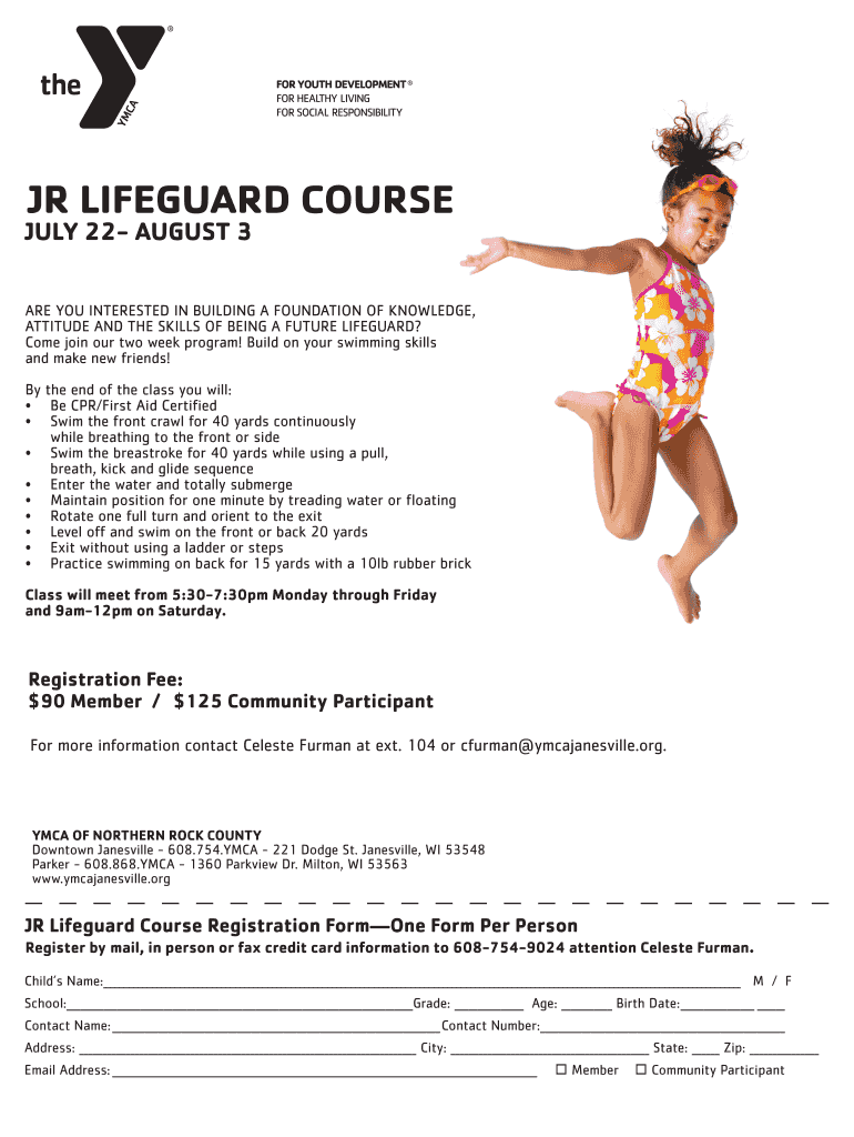 Get the free JR LIFEGUARD COURSE - ymcajanesville.org