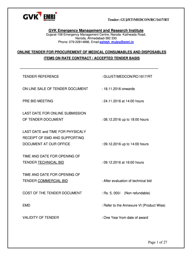 Tender: GUN/ET/MED CON/RC/1617/RTG Emergency Management and Research Institute
