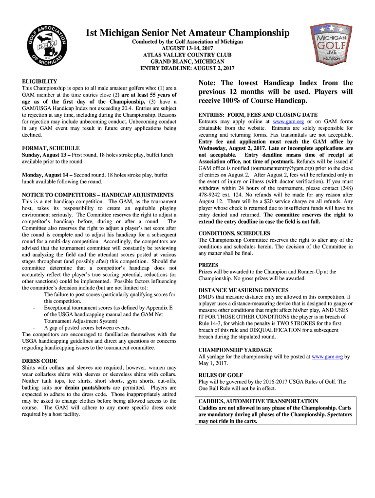 ENTRY DEADLINE: AUGUST 2, 2017,