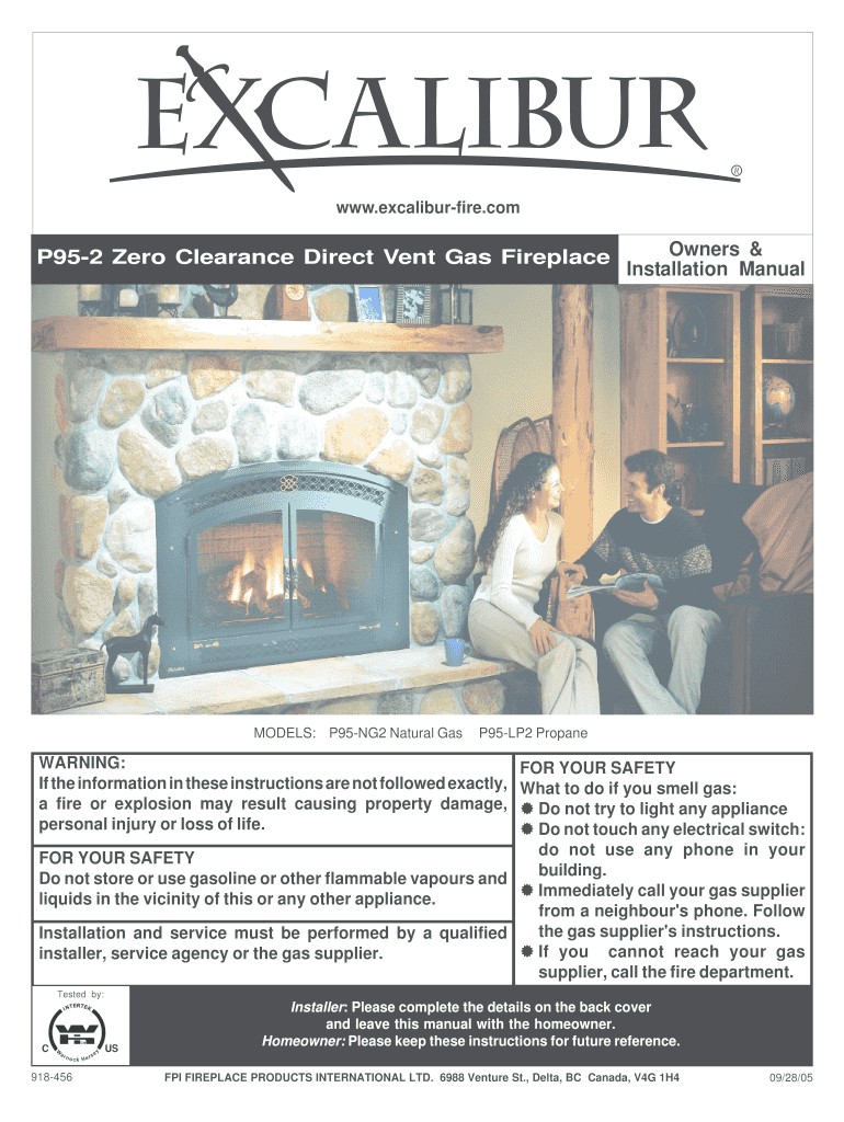 WWW.excaliburfire.comP952 Zero Clearance Direct Vent Gas FireplaceMODELS: P95NG2 Natural Owners & Installation ManualP95LP2 PropaneWARNING: If the information in these instructions are not followed