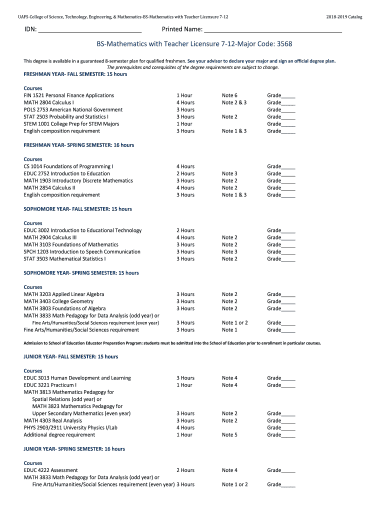 UAFSCollege of Science, Technology, Engineering, & MathematicsBSMathematics with Teacher Licensure 712IDN: 20182019 CatalogPrinted Name: Mathematics with Teacher Licensure 712Major Code: 3568 This