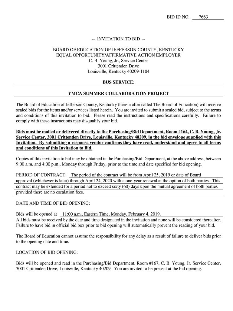 Get the free BUS SERVICE YMCA SUMMER COLLABORATION PROJECT Bids - apps jefferson kyschools