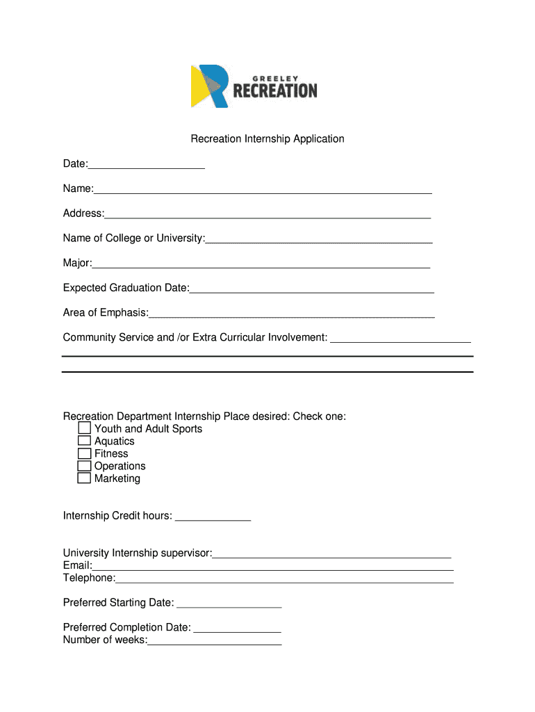 Get the free The City of Greeley Recreation Department is proud to offer a Recreation Internship