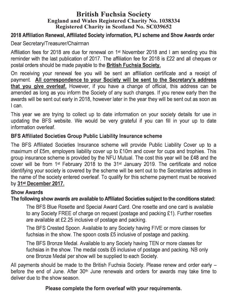 British Fuchsia Society England and Wales Registered Charity No. 1038334