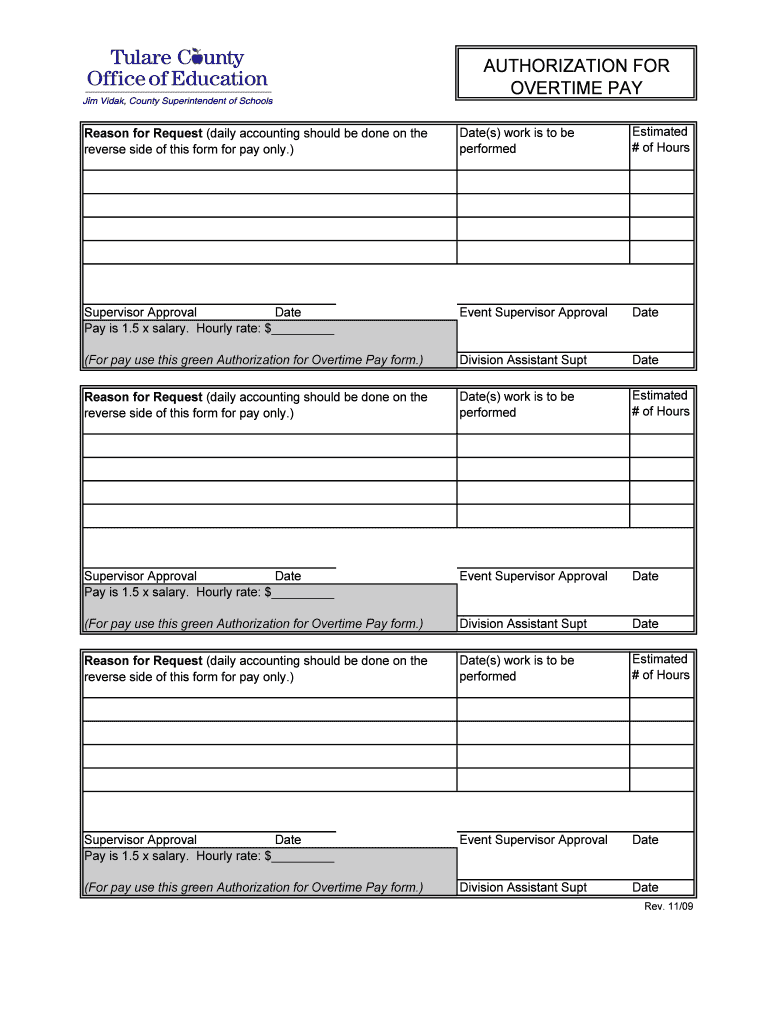 Get the free Authorization for Overtime Pay