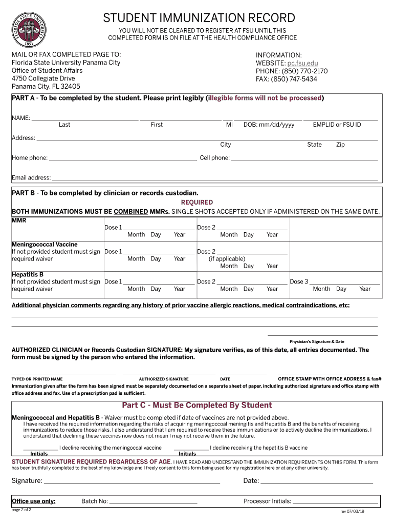 Get the free Immunization Forms - Fordham University - pc fsu