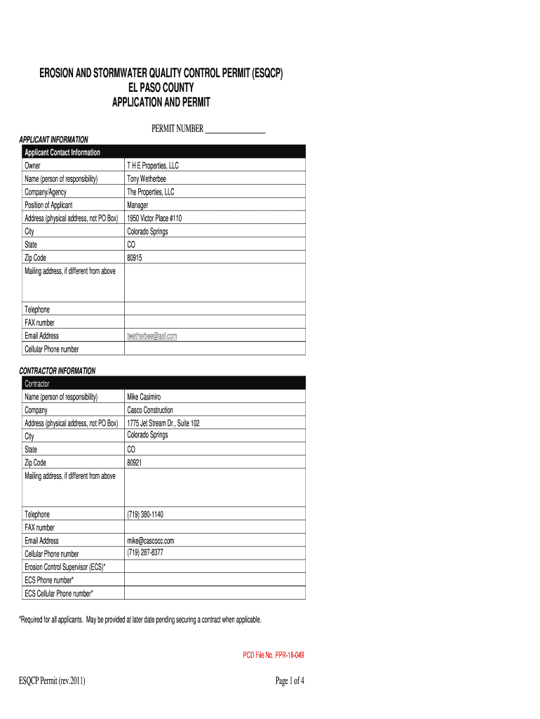 EROSION AND STORMWATER QUALITY CONTROL PERMIT (ESP)