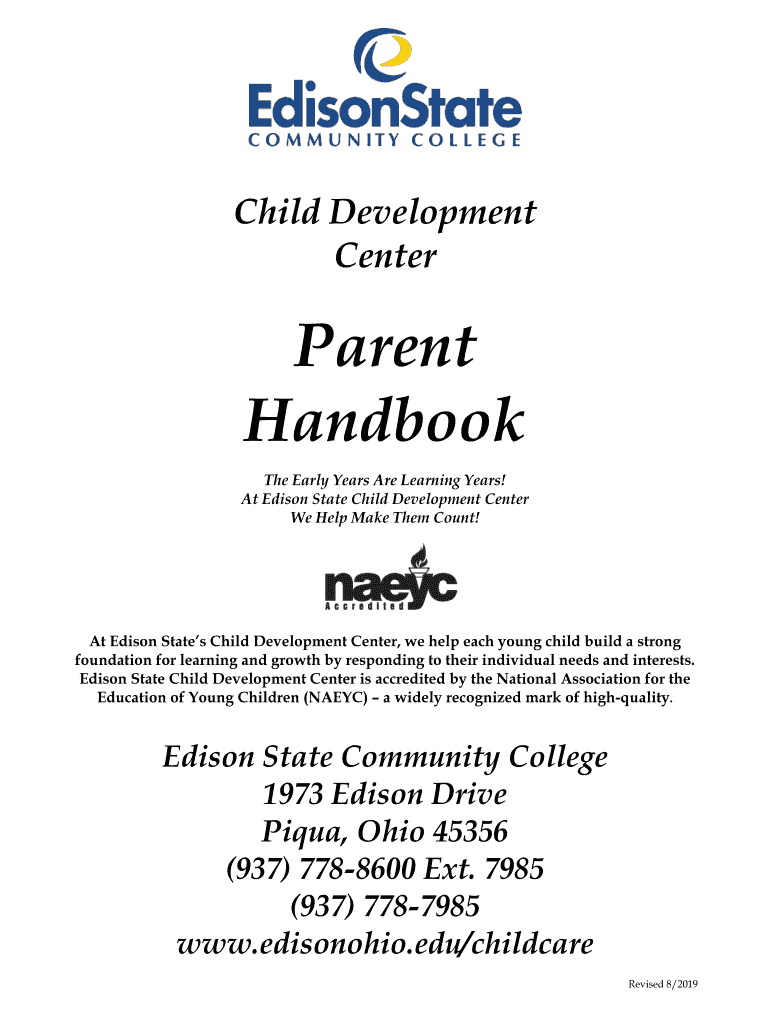 Child Development Centerpiece Handbook The Early Years Are Learning Years! At Edison State Child Development Center We Help Make Them Count! At Edison States Child Development Center, we help each