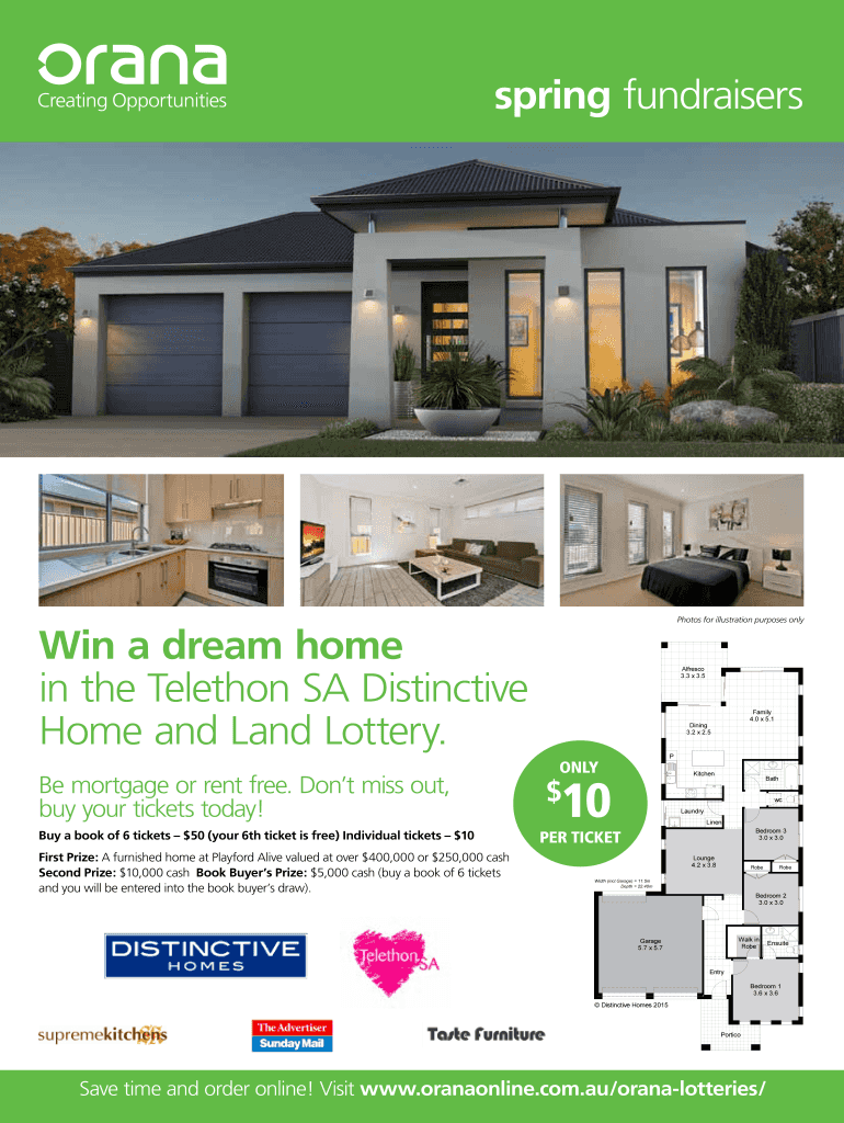 Spring fundraisersPhotos for illustration purposes only a dream home in the Telethon SA Distinctive Home and Land Lottery. Buy a book of 6 tickets $50 (your 6th ticket is free) Individual tickets