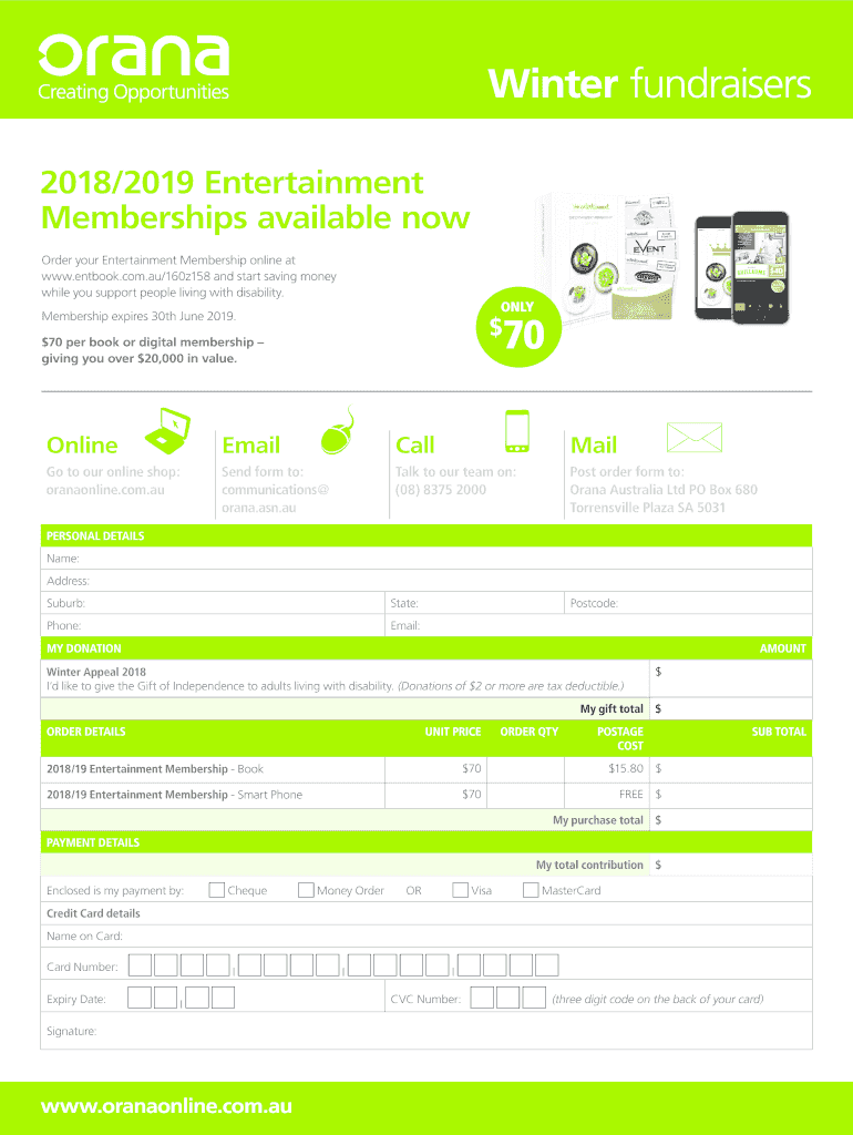 Winter fundraisers 2018/2019 Entertainment Memberships available now Order your Entertainment Membership online at www.entbook.com.au/160z158 and start saving money while you support people living