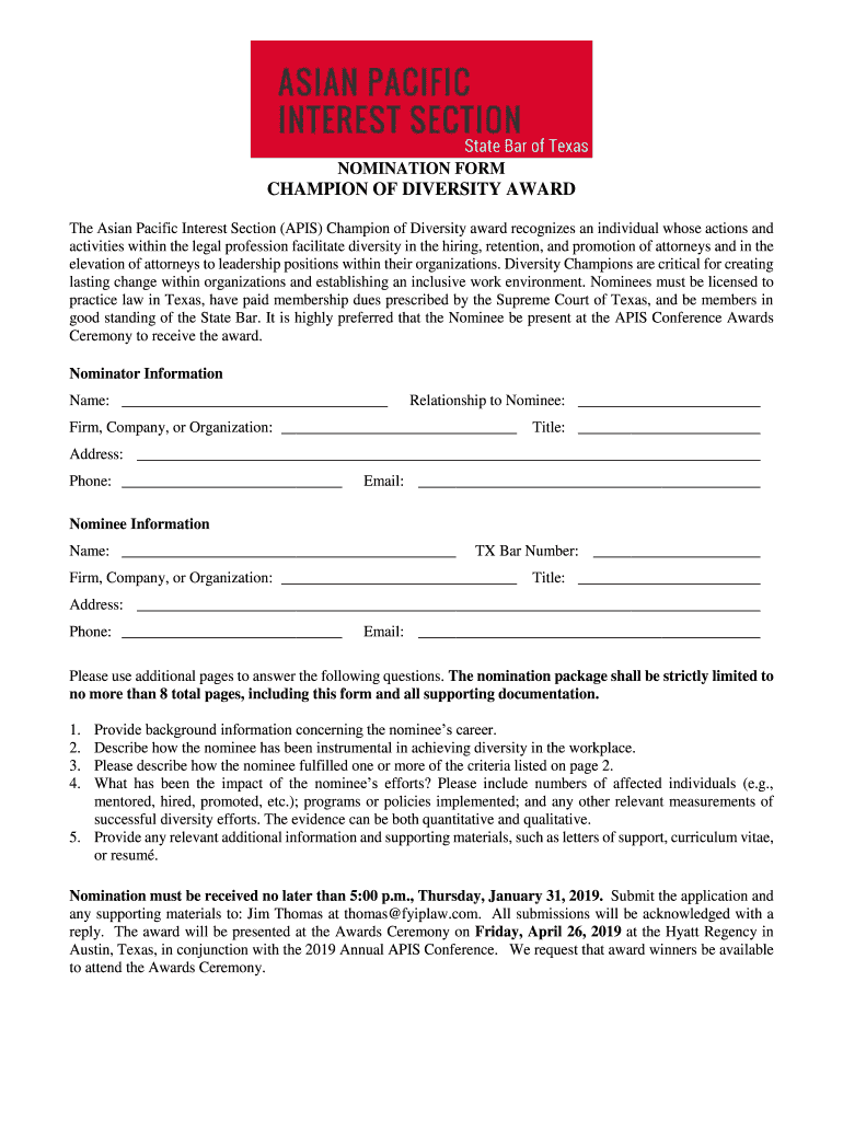 NOMINATION FORMCHAMPION OF DIVERSITY AWARD