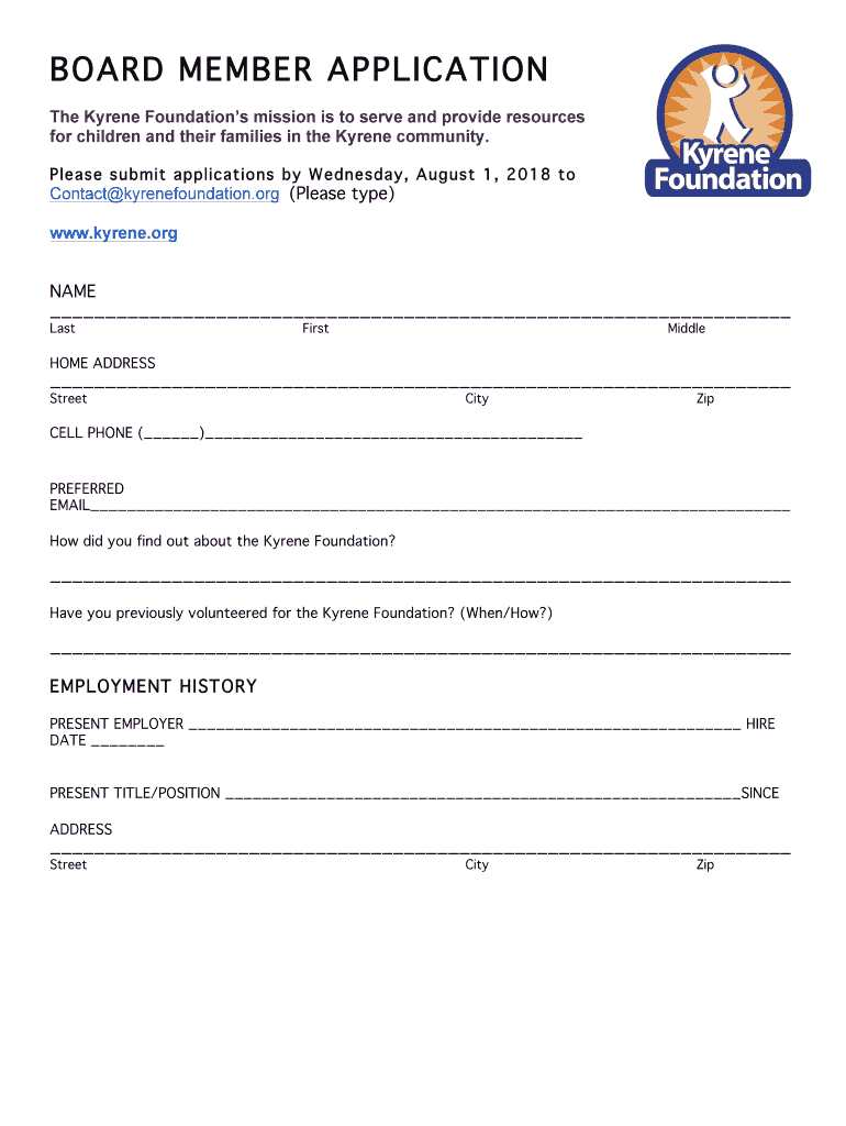BOARD MEMBER APPLICATION The Karen Foundations mission is to serve and provide resources for children and their families in the Karen community. Please sub it applications by Wednesday, August 1,