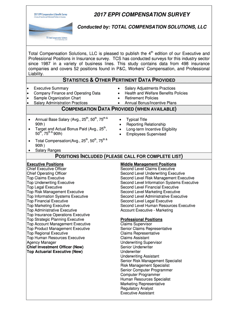 Get the free 2017 EPPI Survey Order Form - Total Compensation Solutions ...