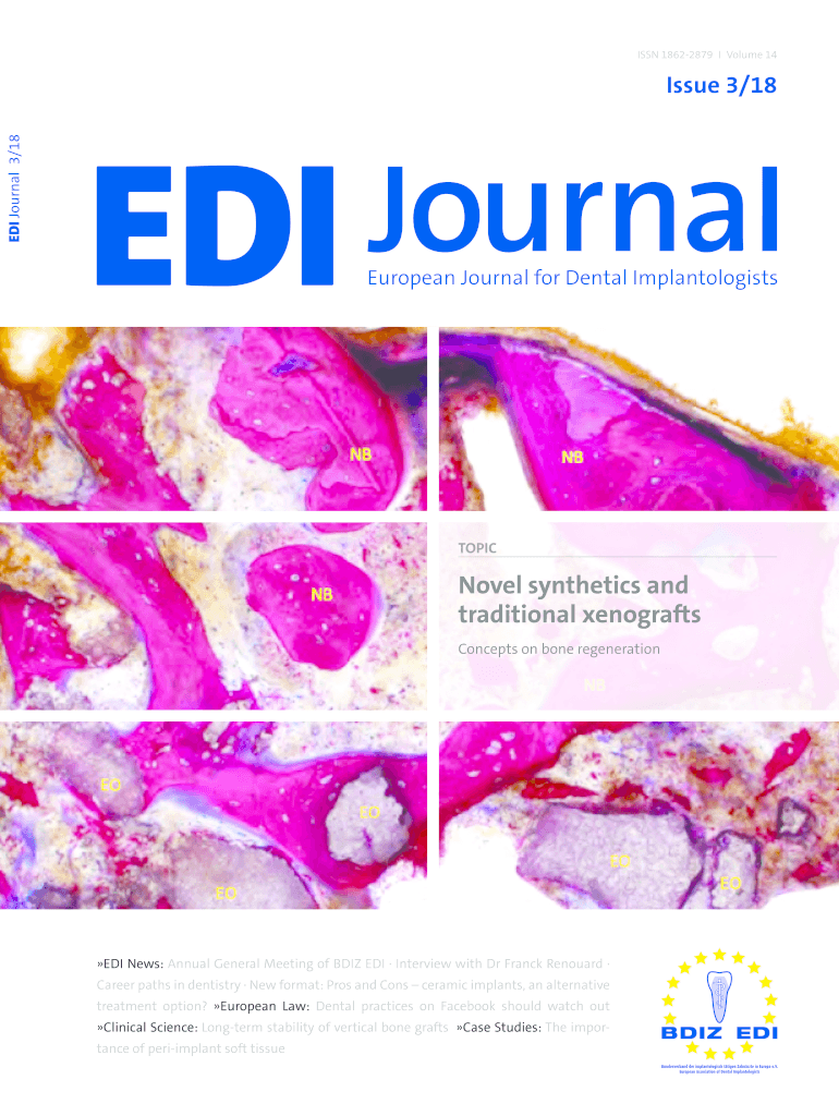 ISSN 18622879IVolume 14EDI Journal3/18Issue 3/18European Journal for Dental ImplantologistsTOPICNovel synthetics and traditional xerography Concepts on bone regeneration EDI News: Annual General Meeting