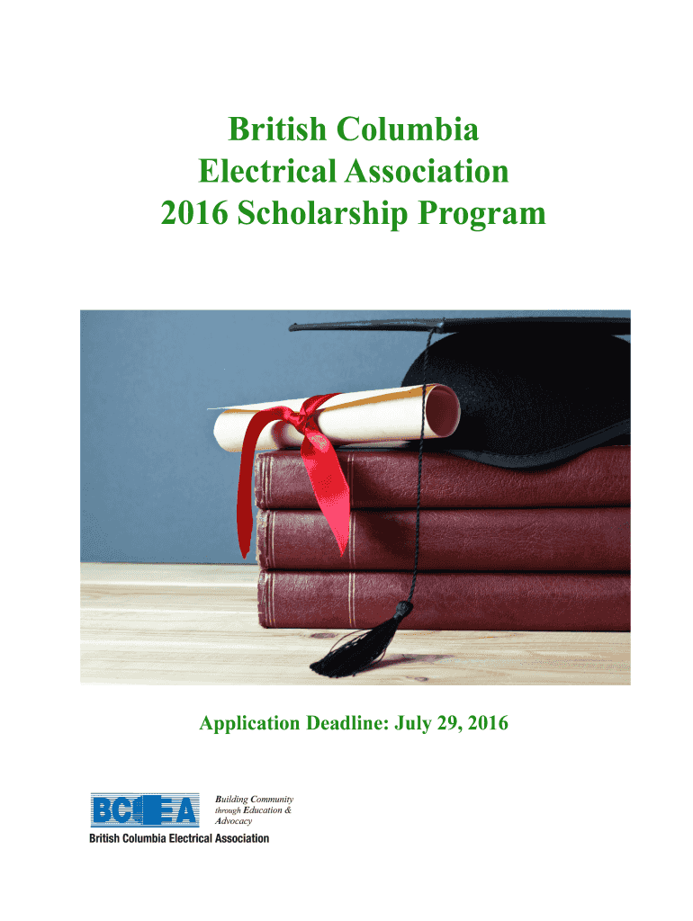2016 Scholarship ProgramApplication Deadline: July 29, 2016The British Columbia Electrical Association Scholarship Program