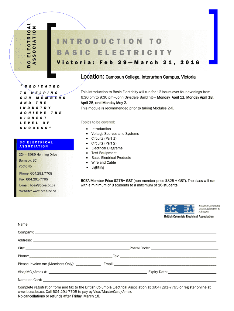 Get the free I N T R O D U C T I O N T O B A S I C E L E C ... - bcea.bc.ca