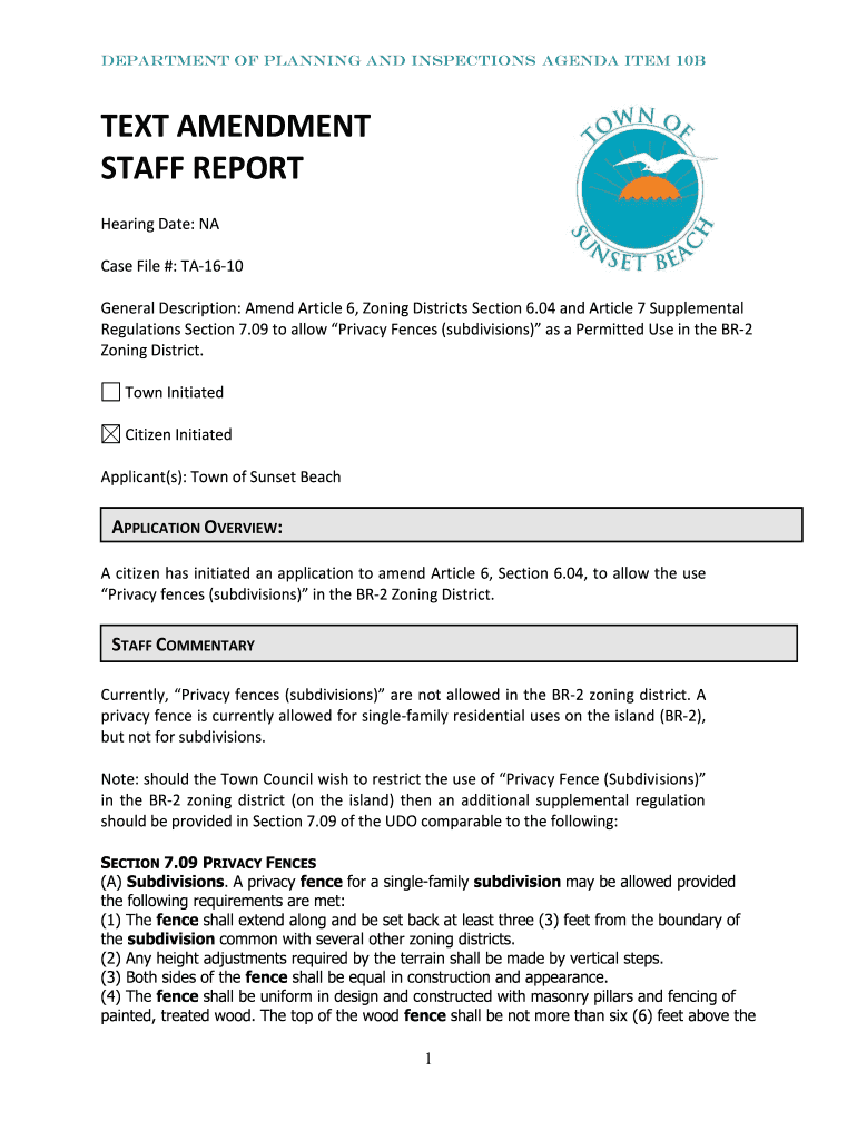 Department of Planning and Inspections agenda item 10bTEXT AMENDMENT