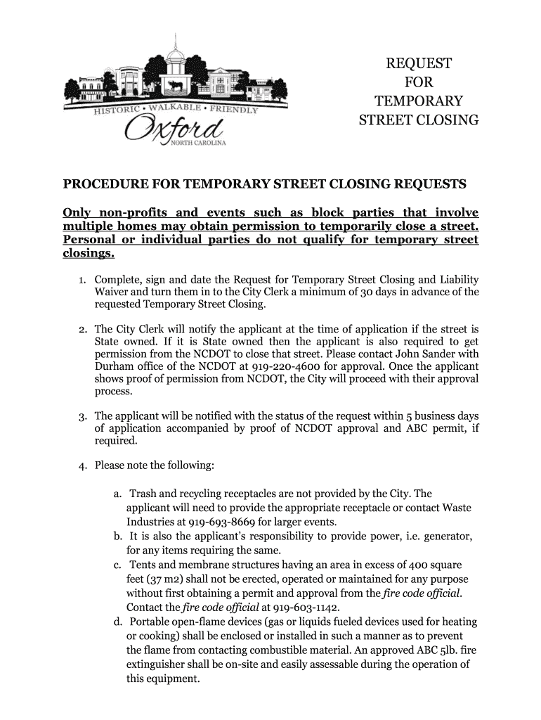 STREET CLOSINGPROCEDURE FOR TEMPORARY STREET CLOSING REQUESTS
