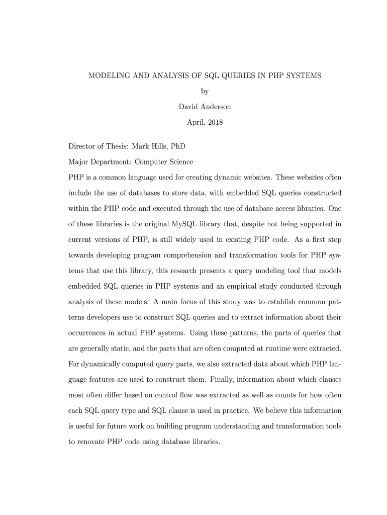MODELING AND ANALYSIS OF SQL QUERIES IN PHP SYSTEMS