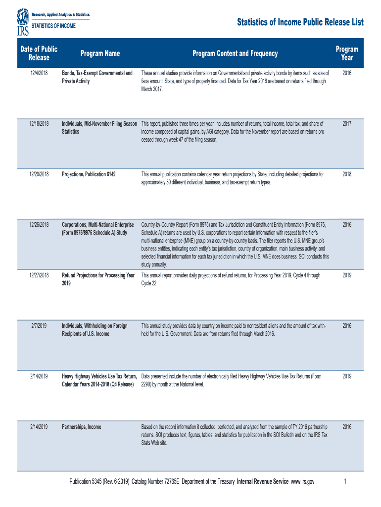 Research, Applied Analytics & StatisticsSTATISTICS OF Incomplete of Public ReleaseProgram NameStatistics of Income Public Release List Program Content and FrequencyProgram Year12/4/2018Bonds, Tax-exempt