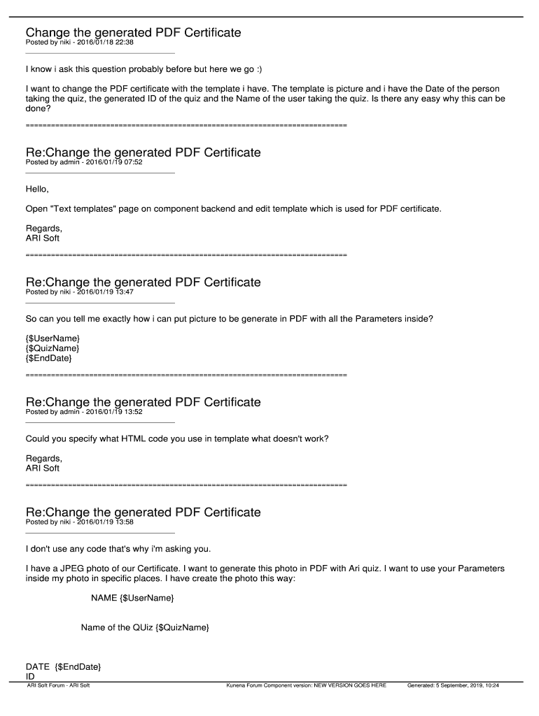 Change the generated PDF Certificate Posted by Niki 2016/01/18 22:38 I know I ask this question probably before but here we go :) I want to change the PDF certificate with the template I have. The