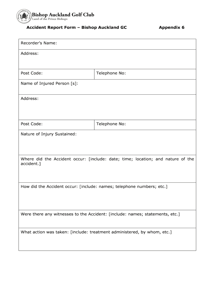 Get the free Accident Report Form Bishop Auckland GC Appendix 6