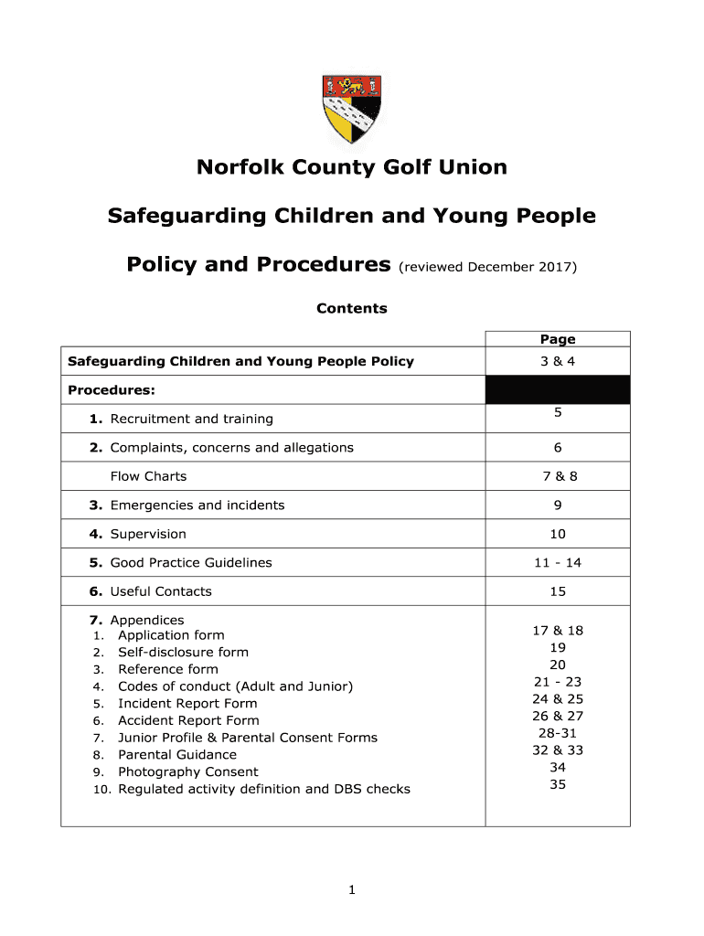 Norfolk County Golf Union Safeguarding Children and Young People Policy and Procedures(reviewed December 2017)Contents Page Safeguarding Children and Young People Policy3&4Procedures: 51. Recruitment
