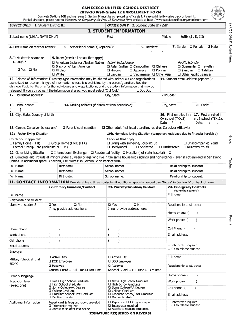 Complete Sections ITII and sign page 2. Section IV must be completed by office staff. Please print legibly using black or blue ink.