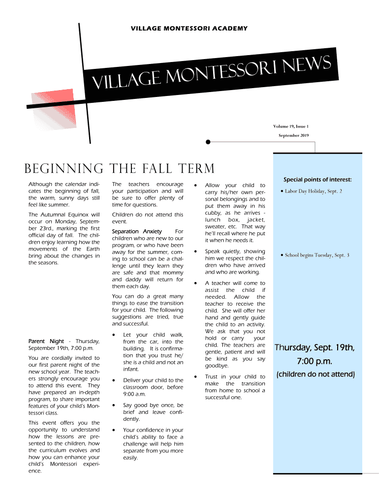 Get the free The ProgramLacombe Preschool- Village Montessori Academy