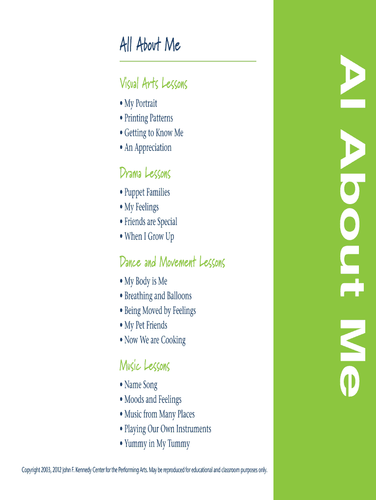 Visual Arts Lessons My Portrait Printing Patterns Getting to Know Me An AppreciationDrama Lessons Puppet Families My Feelings Friends are Special When I Grow Dance and Movement Lessons My Body is