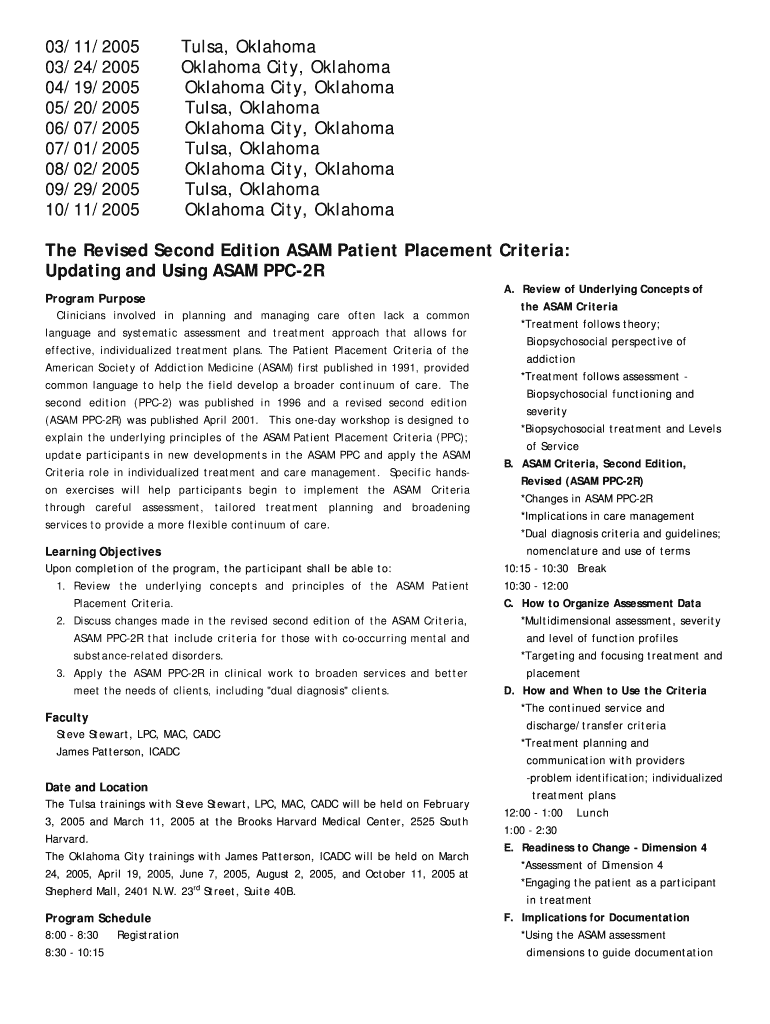 Get the free The Revised Second Edition ASAM Patient Placement Criteria: