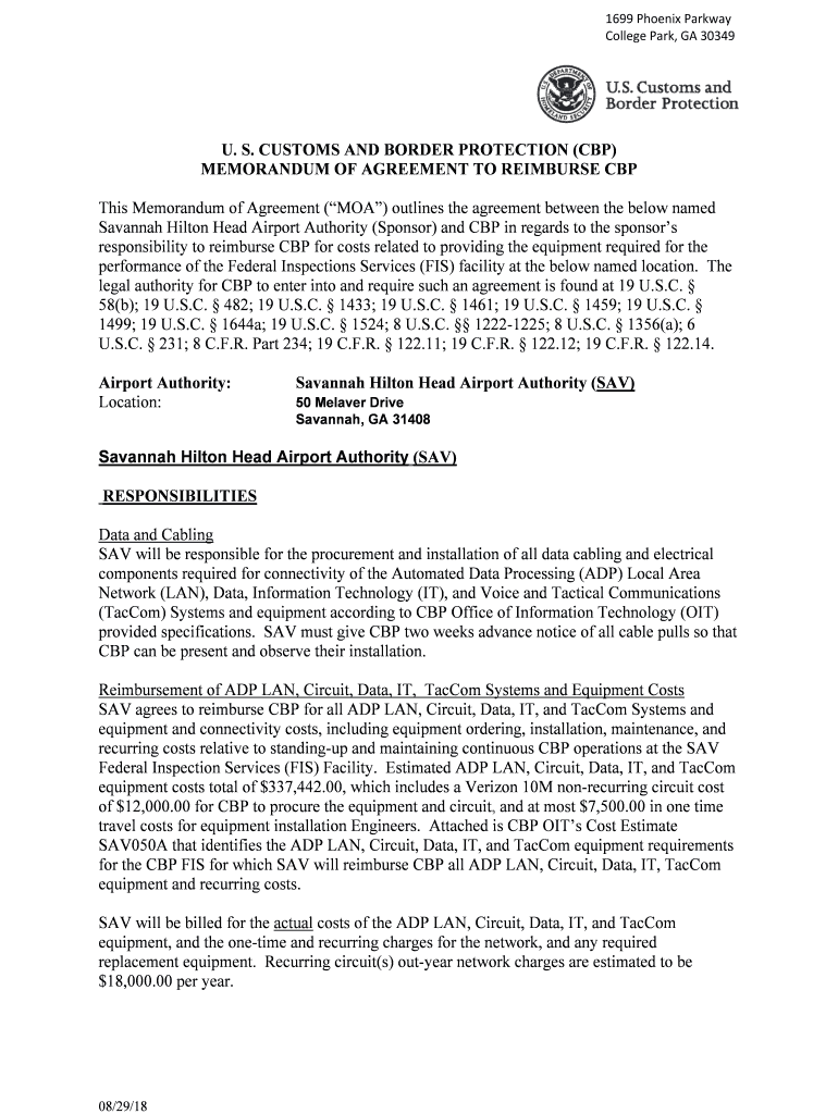 MEMORANDUM OF AGREEMENT TO REIMBURSE CBP