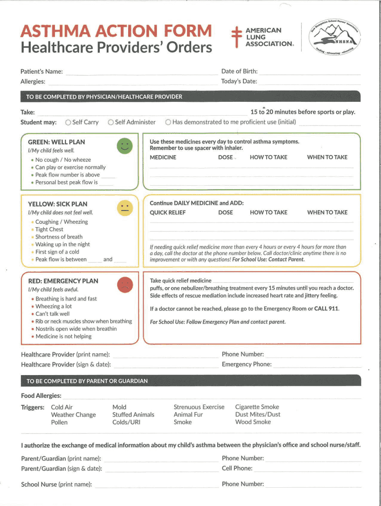 Individuals diagnosed with asthma are required to file asthma action form healthcare.
