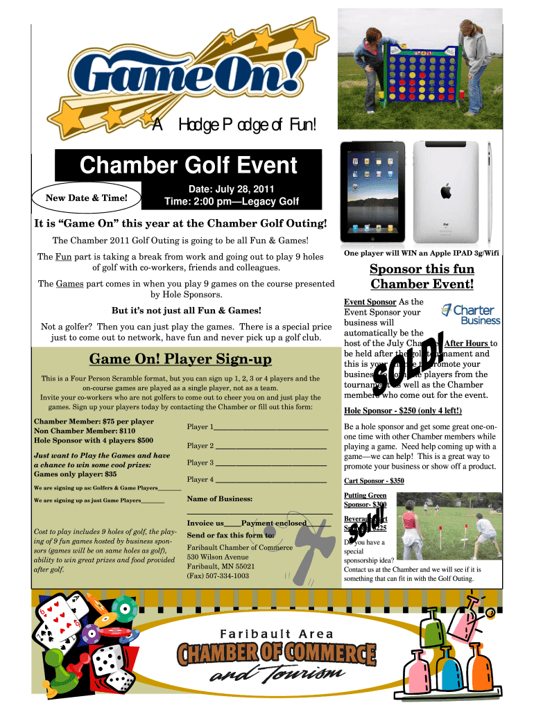 A Hodge P edge of Fun! Chamber Golf Event New Date & Time! Date: July 28, 2011, Time: 2:00 legacy Golf It is Game On this year at the Chamber Golf Outing! The Chamber 2011 Golf Outing is going to