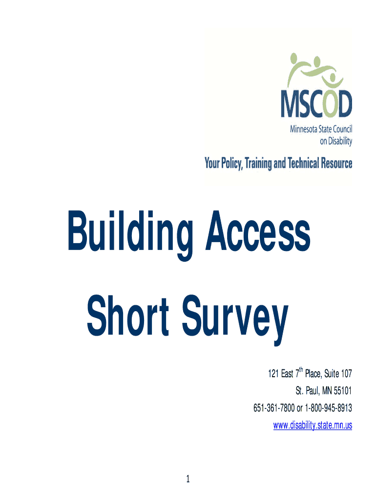 Get the free Building Access - Short Survey. Short-form Survey for assessing the physical accessi...