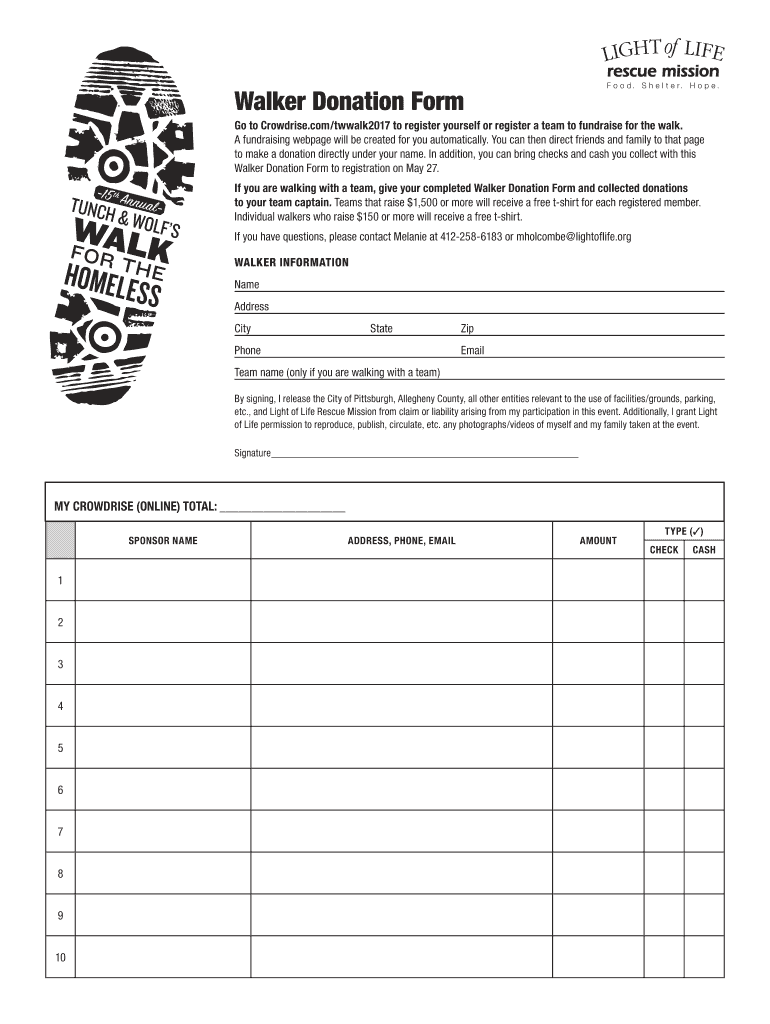 Go to Crowdrise.com/twwalk2017 to register yourself or register a team to fundraise for the walk.
