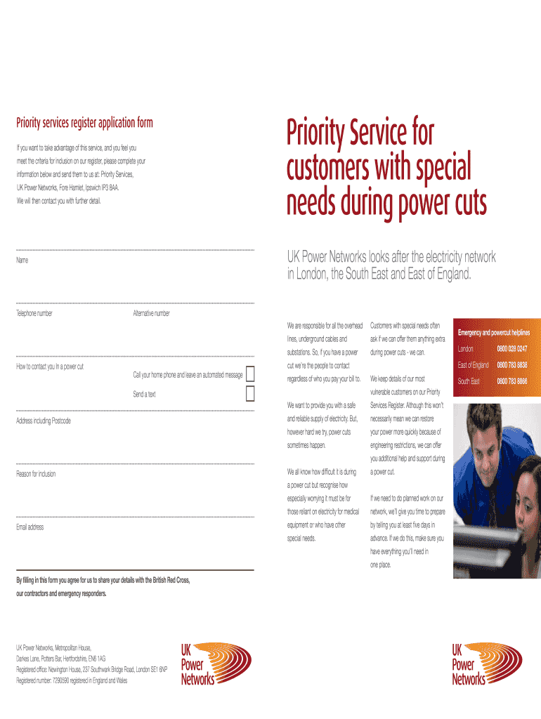 needs during power cutsPriority services register application form