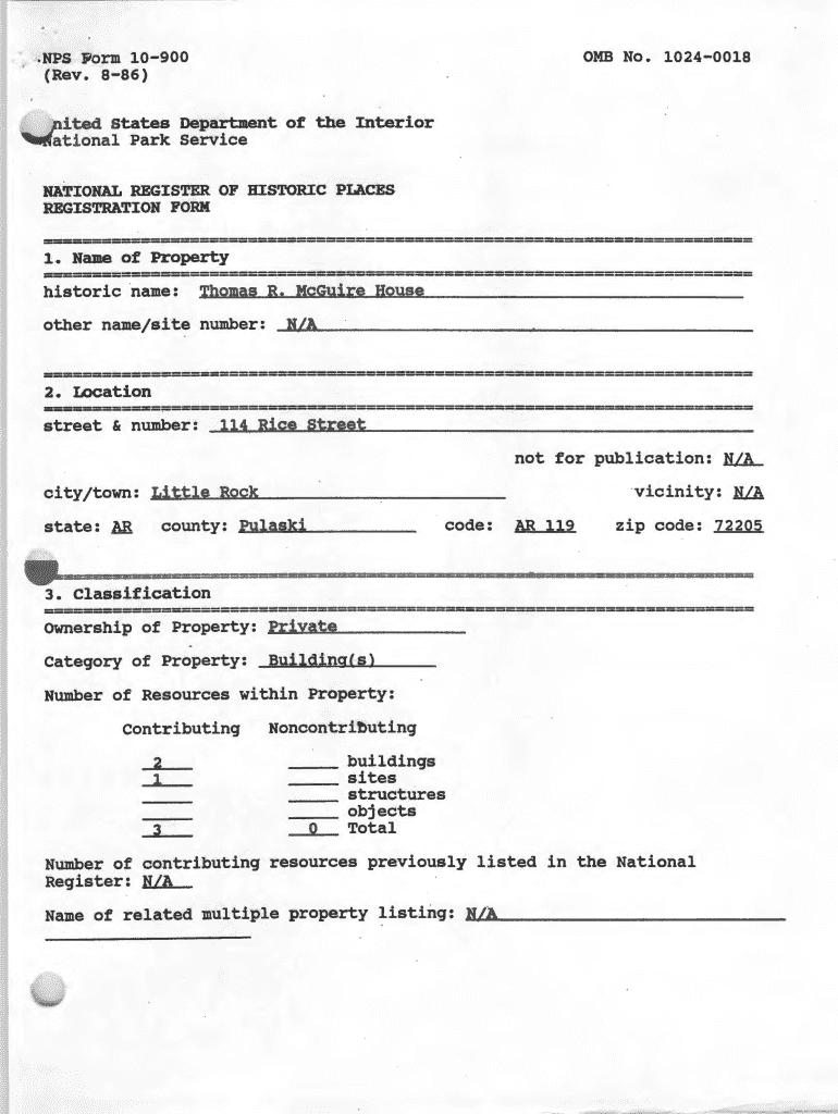 OMB No. 10240018NPS Form 10900 (Rev. 886) noted States Department of the Interior 'national Park service NATIONAL REGISTER OF HISTORIC PLACES REGISTRATION FORM 1. Name of Property historic name:Thomas
