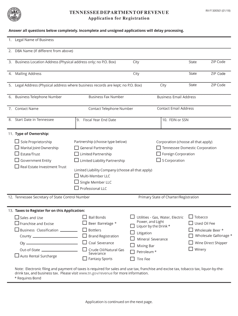 RVF1300501 (01/18)TENNESSEE DEPARTMENT OF REVENUE