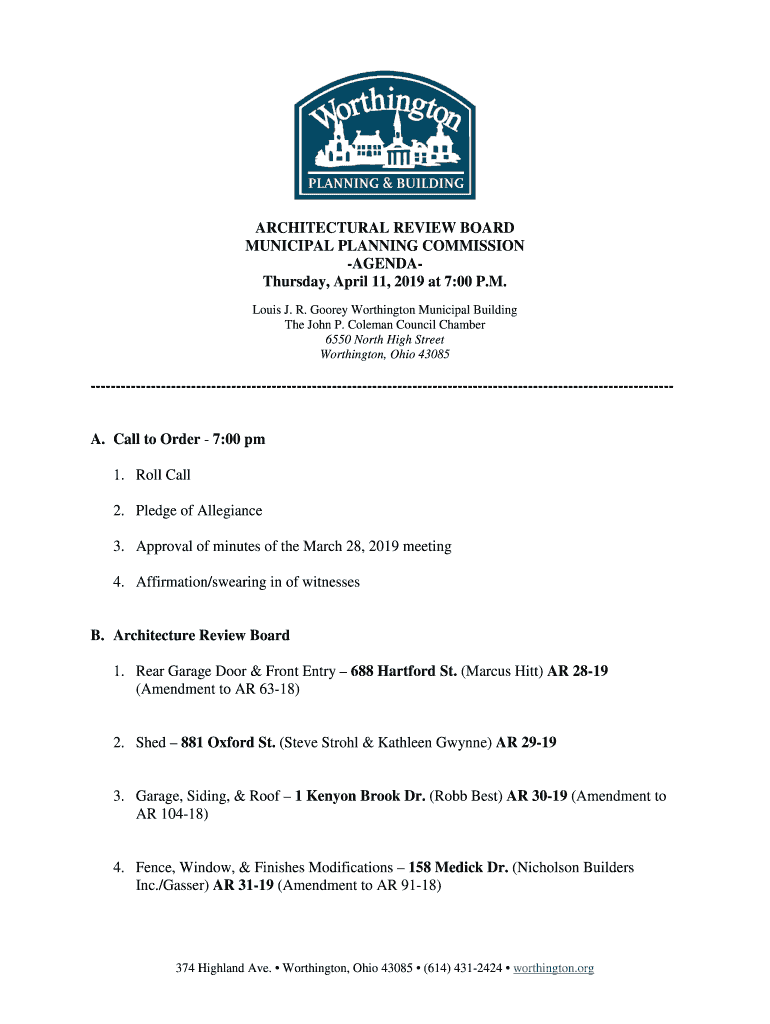 Get the free ARCHITECTURAL REVIEW BOARD ... - Worthington.org