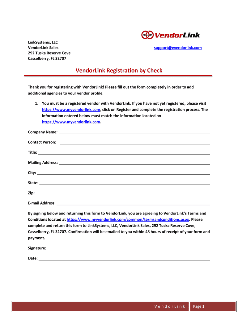 Casselberry, FL 32707support×evendorlink.comVendorLink Registration by Check
