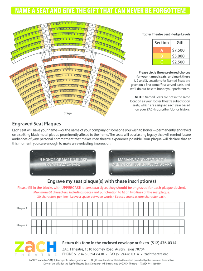 Anyone who wishes to support a venue or event by having their name associated with a specific seat may choose to name a seat.