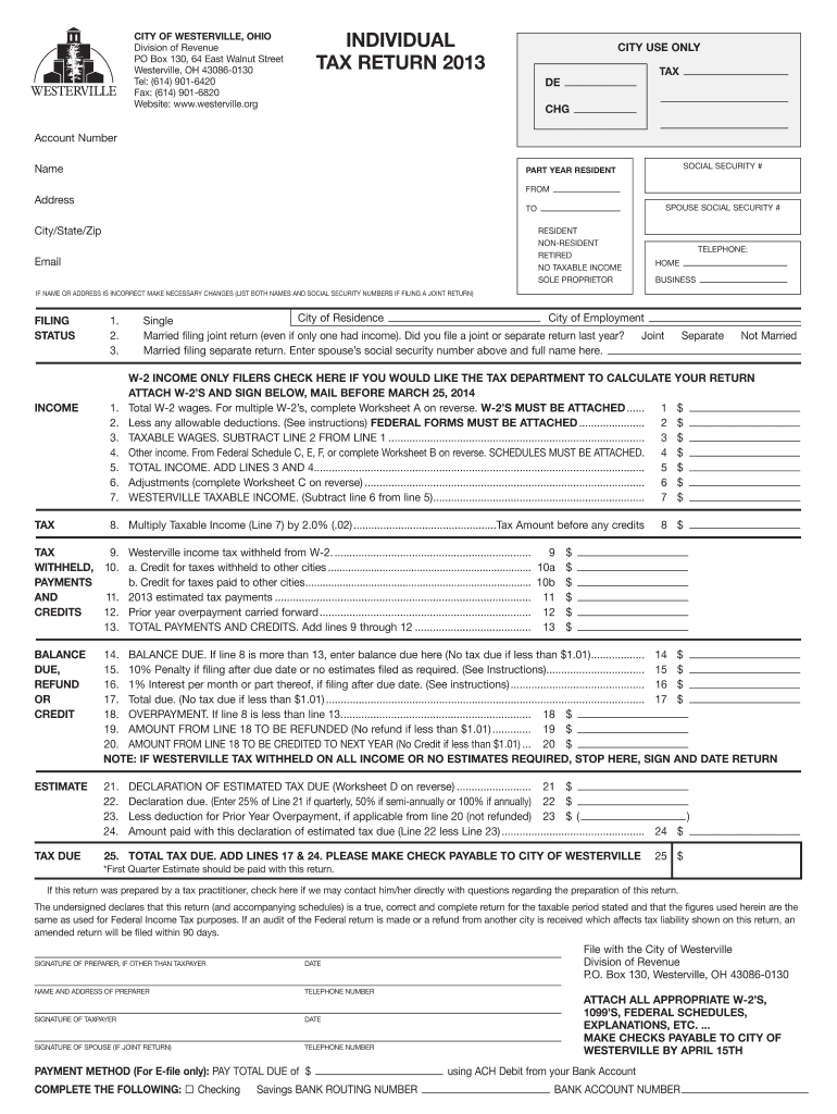 TAX RETURN 2013CITY OF WESTERVILLE, OHIO