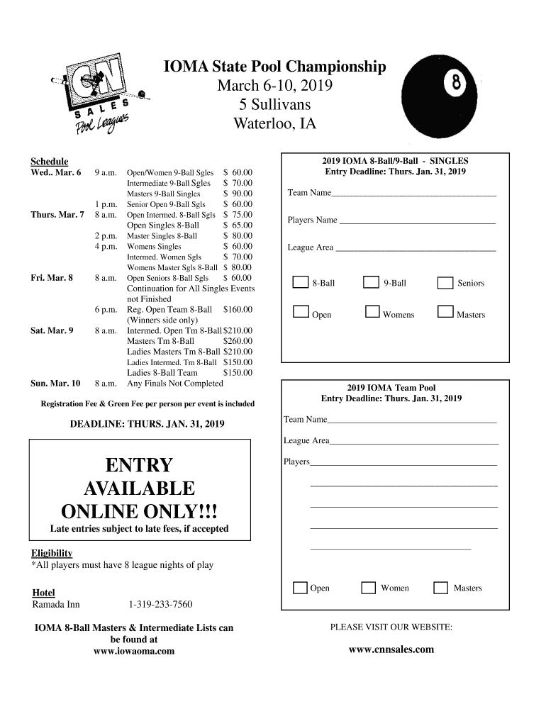 All participants who competed in the state pool championship are required to file IOMA State Pool Champ.
