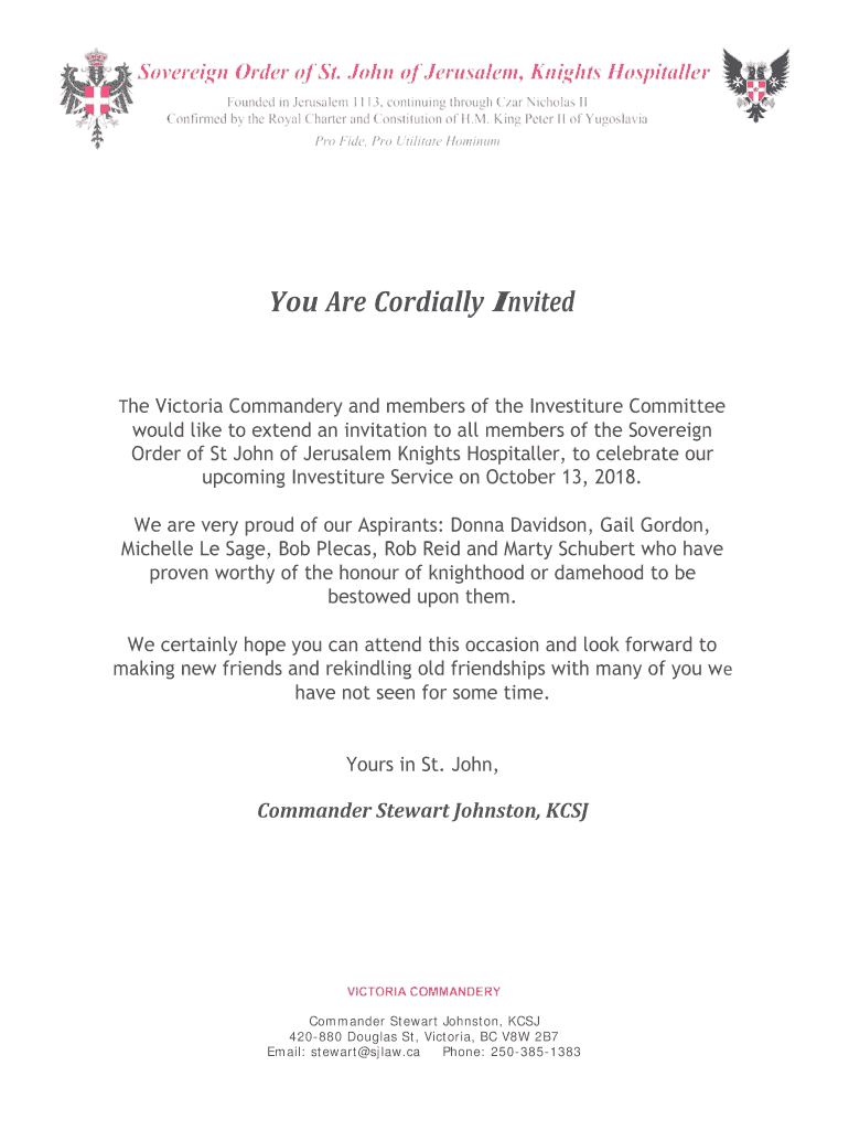- Submit the completed form to the Victoria Commandery office either in person or by mail.