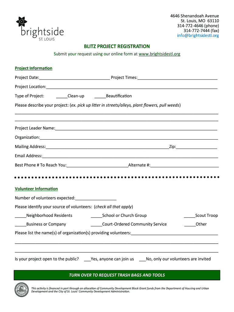 Get the free Project Blitz and Cleaning St. Louis - Brightside St. Louis