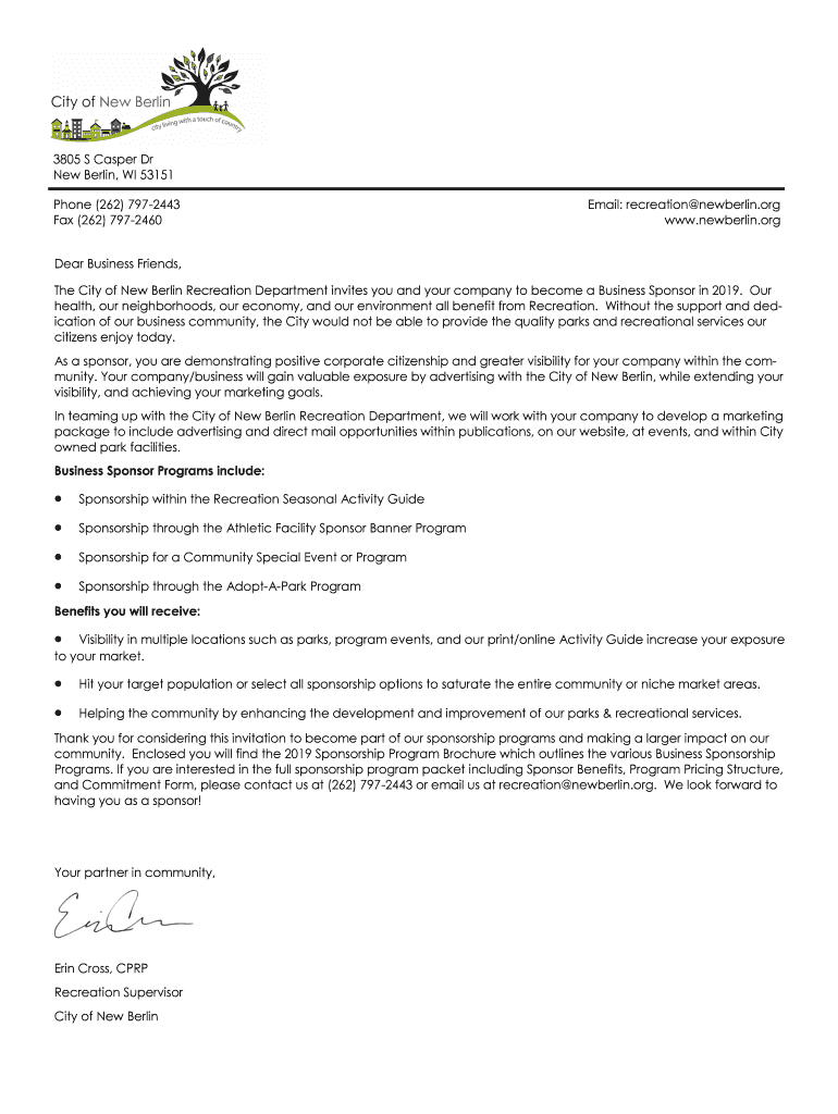 Download the sponsorship packet - city from the official website or request it from the corresponding department.