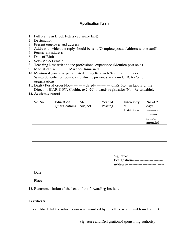 Get the free Application form - Central Institute of Fisheries Technology - cift res