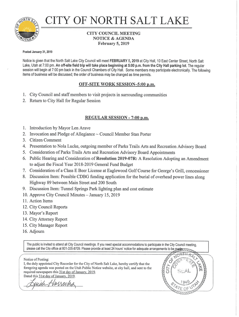 CITY OF NORTH SALT LAKE 10 East Center Street North Salt Lake, Utah 84054 (801) 3358700 Voice (801) 3358719 Fax www.nslcity.orgLEONARD K. GRAVE Mayor KEN LETHAL City ManagerMEMORANDUMTO:MAYOR AND